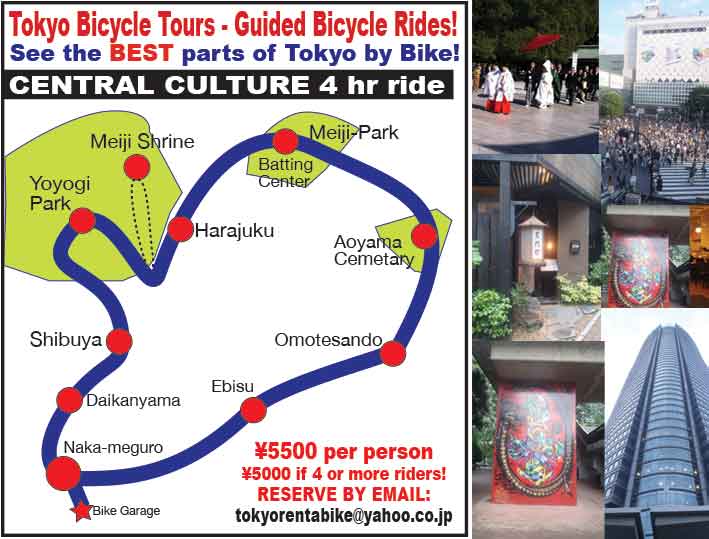 Ride Available if minimum of 2 riders are signed up! Email to: tokyorentabike@yahoo.co.jp for reservations at least 1 day in advance.